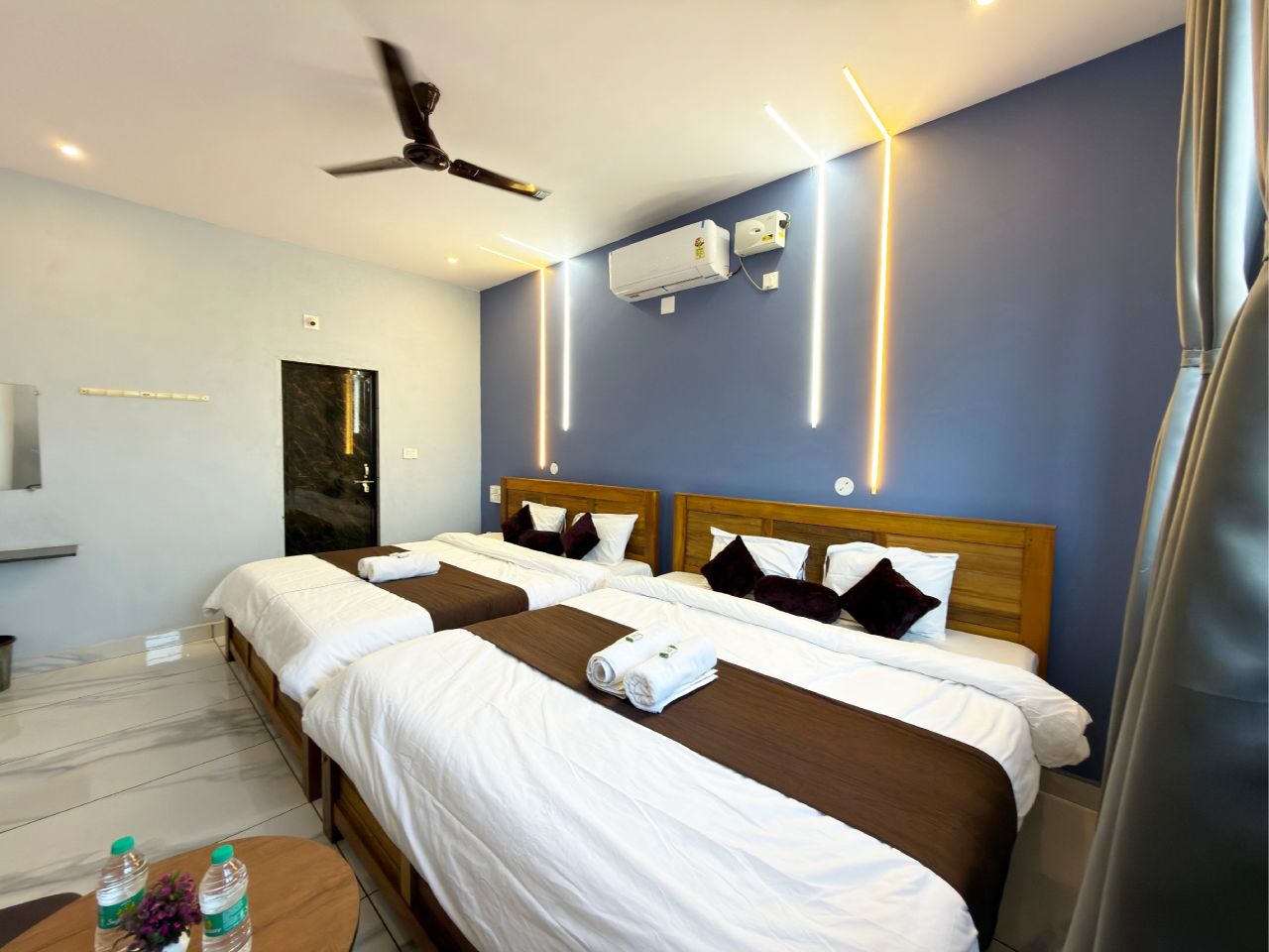 The Multi-Coat AC Rooms are ideal for groups and families, providing comfortable accommodation for 4 adults and 1 child. These spacious rooms feature air-conditioning, multiple beds, and ample space for relaxation. Designed to support group travel, the room ensures convenience, comfort, and privacy, making it suitable for families, friends, or travellers seeking a shared yet comfortable stay experience.